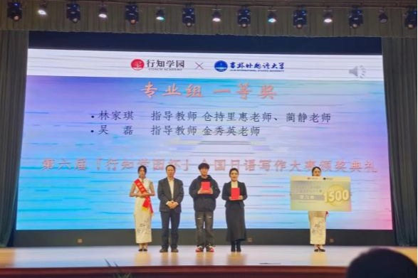 2023年11月18日14:00,第六届“行知学园杯”全国日语写作大赛颁奖典礼在吉林外国语大学世桥大厦举行。此次比赛是由日本行知学园株式会社主办,吉林省翻译协会、行知学园天津校协办以及吉林外国语大学东方语代码学院承办。