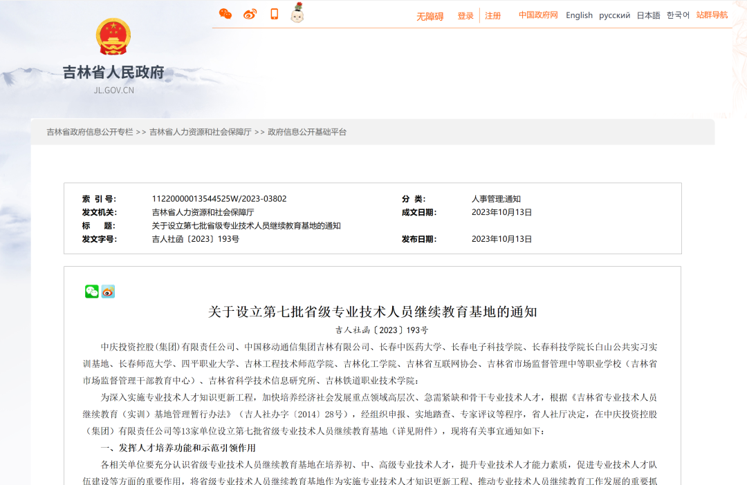 根据《关于设立第七批省级专业技术人员继续教育基地的通知》(吉人社函〔2023〕193号),长春科技学院长白山公共实习实训基地(以下简称实训基地)被认定为第七批省级专业技术人员继续教育基地。2023年12月1日上午,省人社厅专技处副处长曲立国为实训基地授牌。
