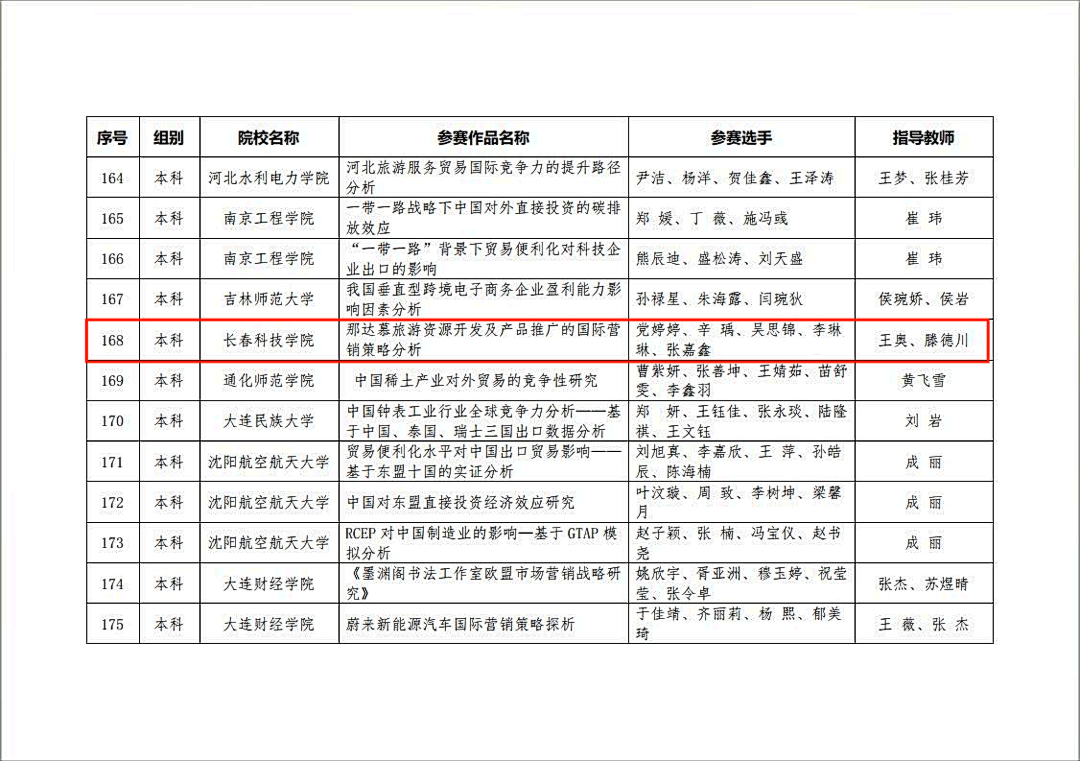 本届大赛长春科技学院荣获最佳组织奖。经济与管理学院国际经济与贸易专业2021级国贸1班党婷婷、辛瑀、吴思锦、李琳琳、张嘉鑫同学在王奥老师和滕德川老师的指导下,荣获2023年全国商业精英挑战赛国际贸易竞赛国际商务专题赛道国赛二等奖。