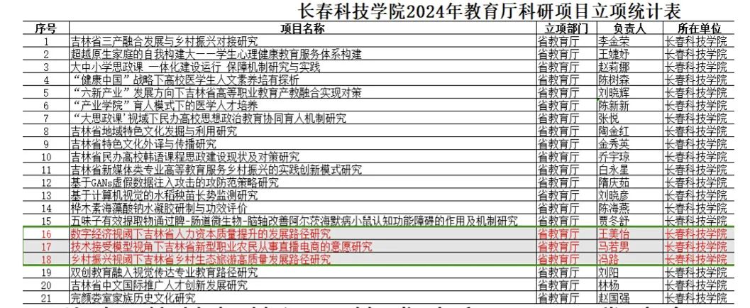 正是秋高麦黄日,硕果飘来暖人心。 10月17日和19日,从吉林省教育厅和吉林省民族事务委员会相继传来喜讯,经济与管理学院组织申报的2024年度吉林省教育厅科研项目和2023年度吉林省民族事务委员会课题共有6名教师成功获得立项,成绩斐然,可喜可贺!