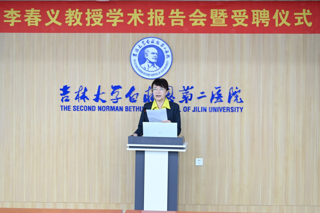 仪式上,骨科医院执行院长杨小玉教授向与会人员介绍了李春义教授:杨薇副院长对李春义教授获聘吉大二院外聘教授表示祝贺并为其颁发了聘书。