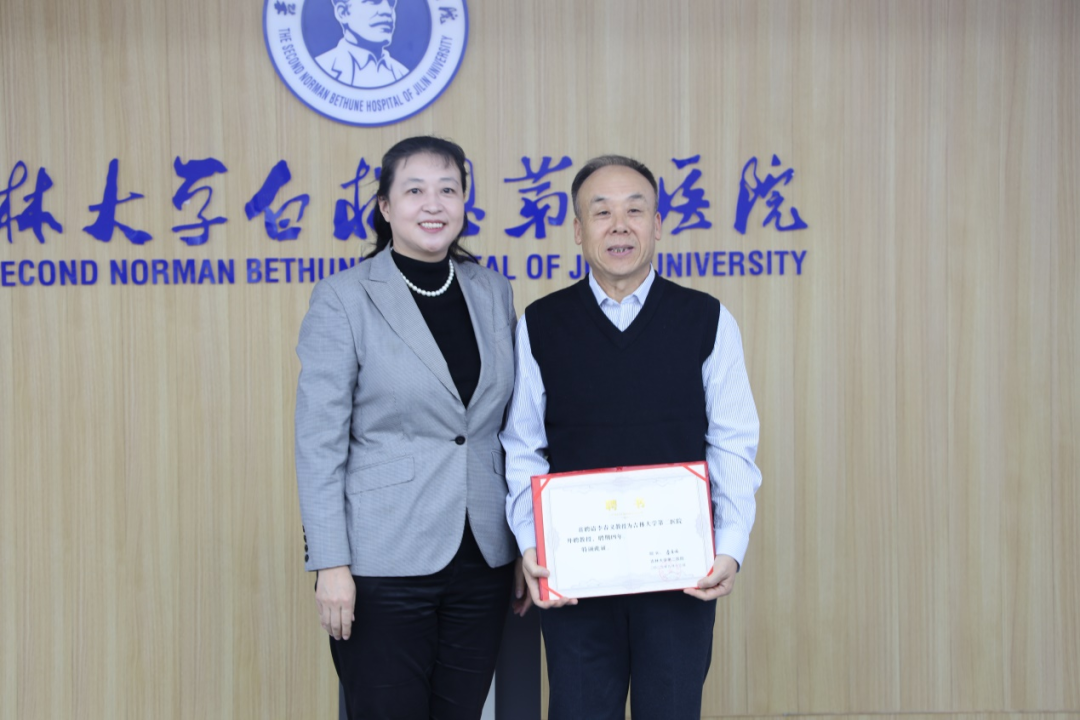 杨薇副院长对李春义教授获聘吉大二院外聘教授表示祝贺并为其颁发了聘书