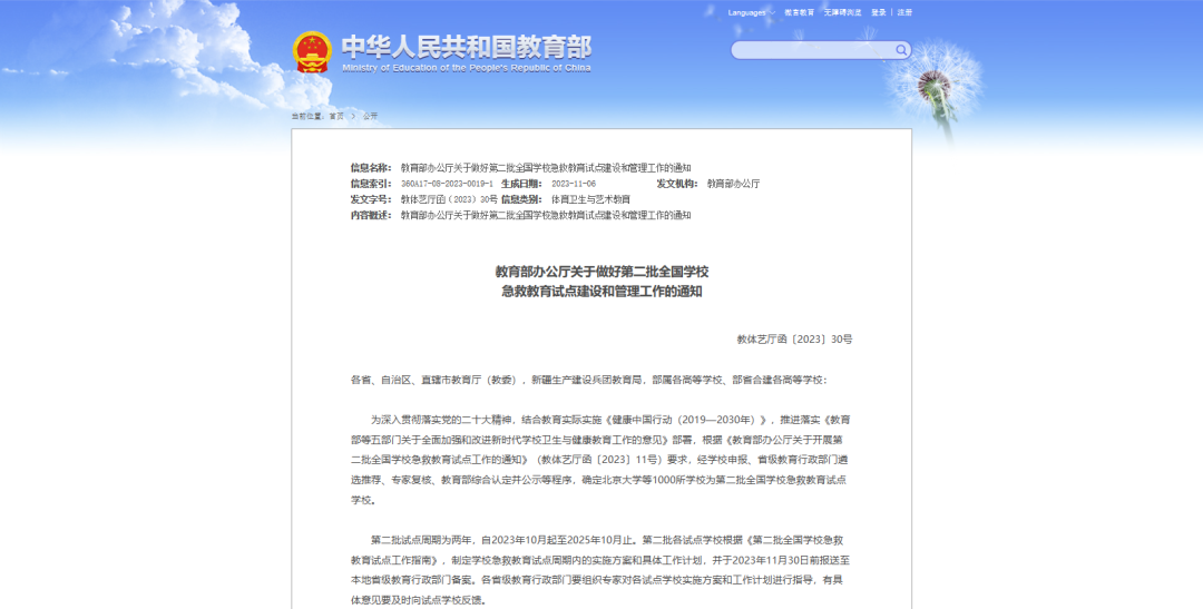 日前,教育部发布《关于第二批全国学校急救教育试点学校认定结果通知》文件,全国1000所学校获批,长春科技学院榜上有名。