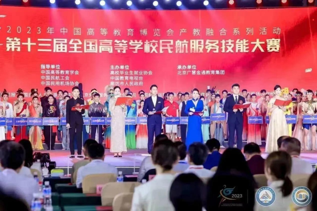 2023年7月15日,由中国高等教育学会、廊坊市人民政府主办,中国教育报、中国民航报、中国民航人力资源开发中心、北京外航服务有限责任公司、中国航空运输协会客舱乘务工作委员会、北京大兴国际机场临空经济区(廊坊)管委会协办,300余所高等学校、500余家企事业单位、百余所境内外航空公司和机场集团支持的第十三届全国高等学校民航服务技能大赛—民航服务形象与礼仪比赛(暨形象大使选拔赛)于廊坊国安第一城隆重举行!