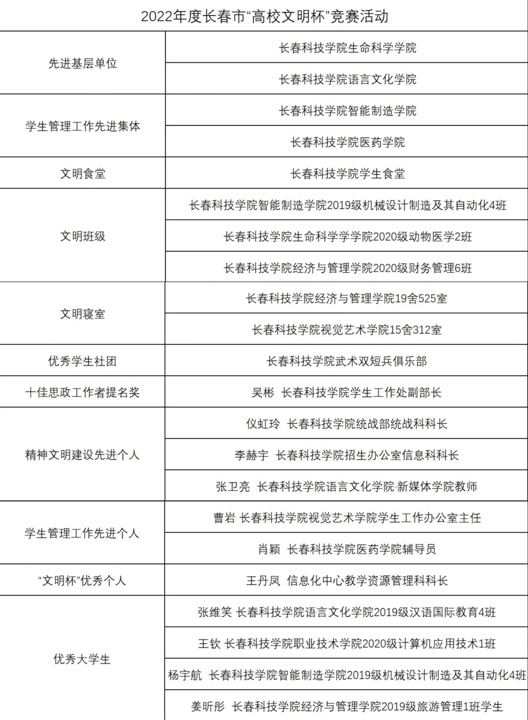 近日,长春市2022年度“高校文明杯”竞赛活动评比结果揭晓,长春科技学院荣获多项殊荣。