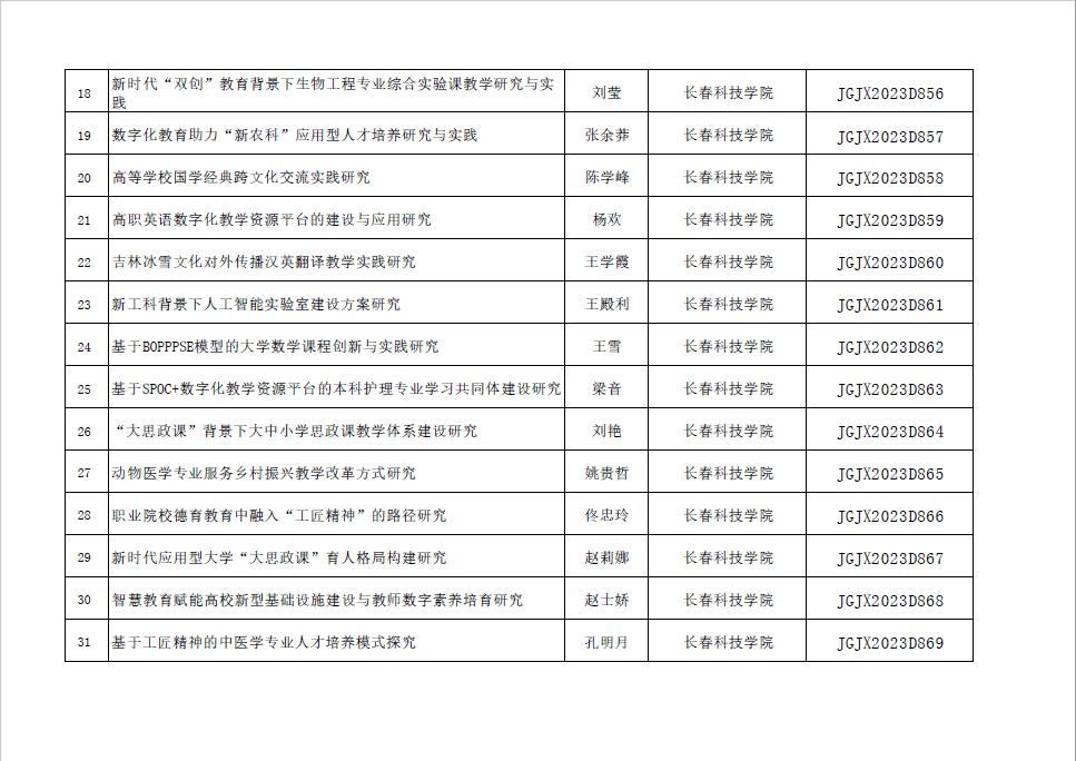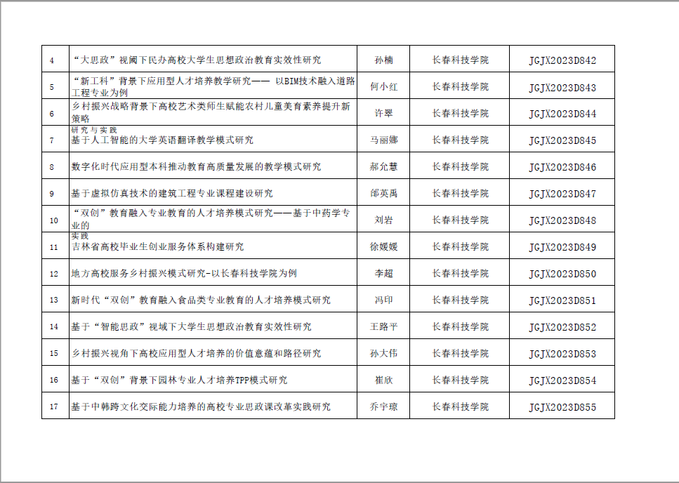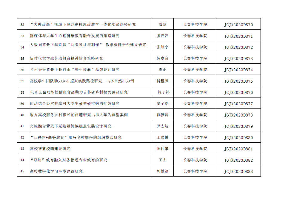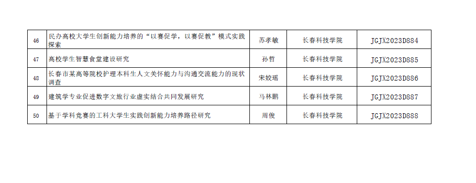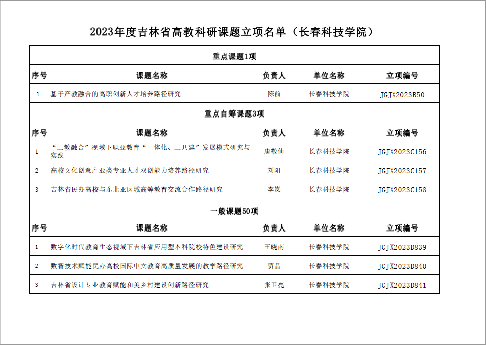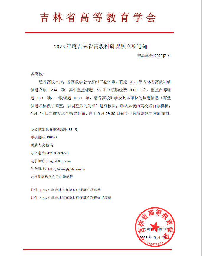 近日,吉林省高等教育学会发布了《关于公布2023年度吉林省高教科研课题立项通知》(吉高学会[2023]7号),我校获批立项课题54项,其中重点课题1项、重点自筹课题3项、一般课题50项,获批数量位居全省同类院校前列,其中大学生专项15项,实现了学生科研的首次突破!