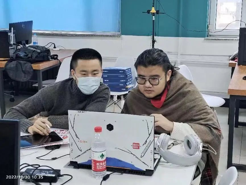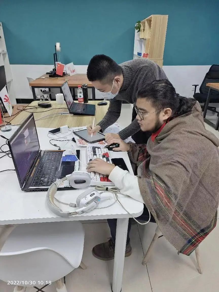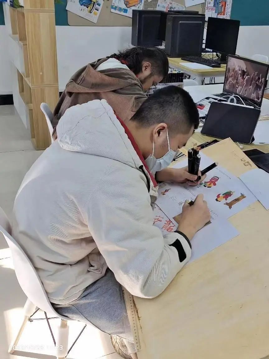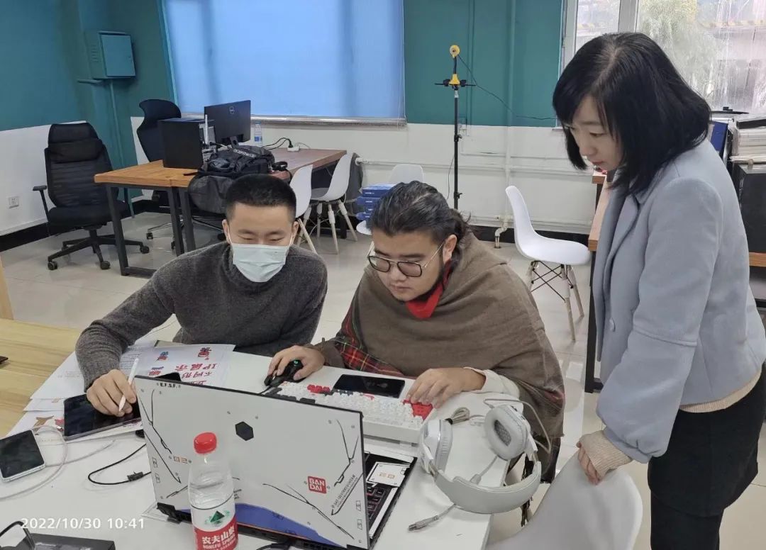 比赛前耿鹏远同学和崔进恒同学进行了约15天的集训与赛前准备,时间比较紧,任务比较重。同学们为能够更好的完成不同模块项目任务,把握好每一个项目环节。两名同学每天从早上8点到晚上8点,不间断的进行不同模块的模拟训练与制作,为能够更好的提升自己,达到最好的设计标准。常丹老师和李胜男老师对比赛要求文件进行分析解读并指导学生根据比赛相关要求进行训练。因模块要求比较多,很多细节需要不断反复设计与训练。常丹老师针对学生整体设计方案创作、IP策划、IP形象设计、产品设计、项目路演模块进行方案设计指导与修改。李胜男老师对学生游戏设计制作、动画短片制作模块进行指导和技术支持。樊星辰老师为场外辅助。