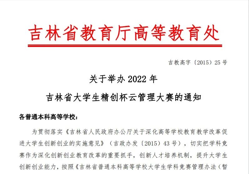 2022年11月5日,历时15天的2022年吉林省大学生精创杯云管理大赛圆满结束。吉林省大学生精创杯云管理大赛是吉林省普通本科高等学校大学生学科竞赛名单中的赛事,是检验吉林省大学生人力资源管理知识技能的高水平专业竞赛。本届赛事共有来自吉林省内高校的100余支队伍参赛,参赛选手400余人。