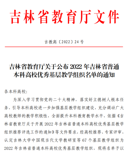 近日,吉林省教育厅下发《关于公布2022年吉林省普通本科高校优秀基层教学组织名单的通知》,学校推荐的胡铁军教授负责的“梅花鹿产业教学、科研创新中心”被认定为2022年吉林省普通本科高校优秀基层教学组织(A类)。