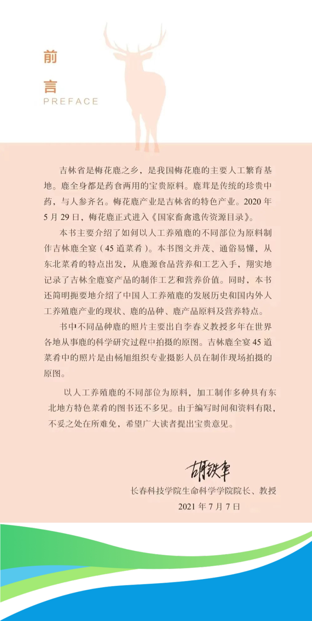 近日,学院胡铁军院长和李春义教授主编的《人工养殖鹿肉的45种烹饪方法》由国家科学普及出版社正式出版!该书以人工养殖鹿为基础,融合吉林省文化、现代工业技术等以图文并茂,通俗易懂的方式编著;是一本以人工养殖鹿为原料制作东北地方特色菜肴的先锋书籍。