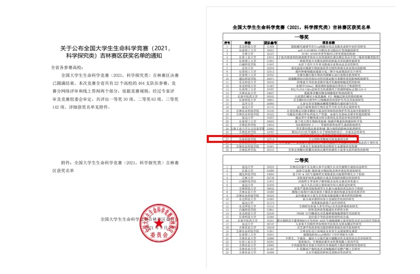 近日,全国大学生生命科学竞赛(2021,科学探究类)吉林赛区决赛圆满结束。我院由于妍老师、刘艳老师指导的两组参赛项目经过严格的初赛和决赛,在全省22所高校464个参赛作品中脱颖而出,分别荣获一等奖和三等奖的好成绩。