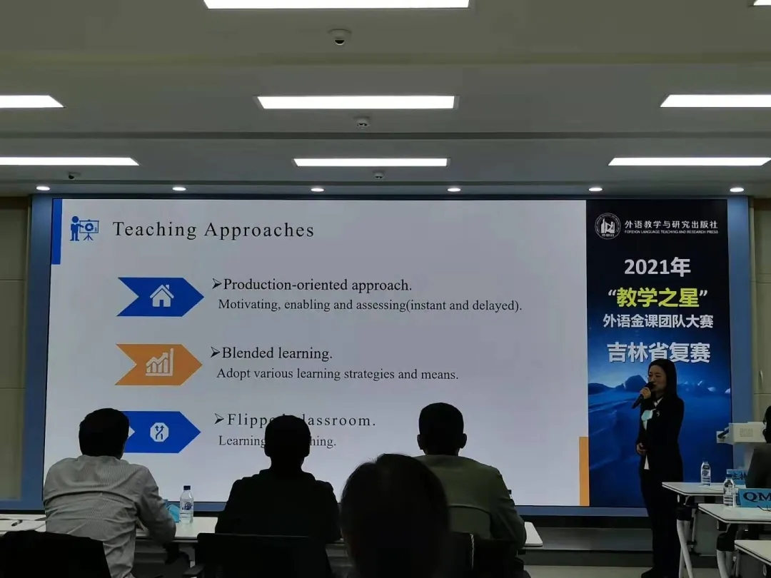 外研社2021年吉林省普通高等学校“教学之星”外语金课团队大赛由外语教学与研究出版社、吉林省高等学校英语类专业教学指导委员会与吉林省大学外语教学研究会联合主办。10月16日,来自省内高校共12支教学团队参加了吉林省复赛。