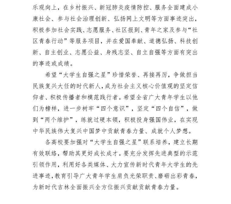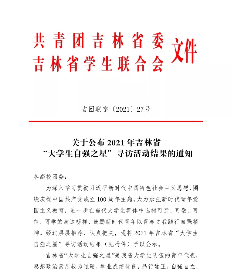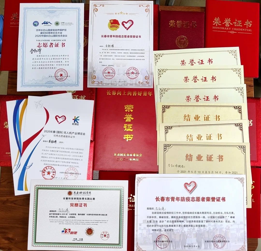 积极参加社会各级志愿活动,例如前往张家口市大青沟支教、参加吉林长白山国家级自然保护区建区60周年大会志愿活动、参加2020长春(国际)无人机产业博览会志愿活动等。在2021年疫情防控志愿服务活动中表现突出。在完成工作后参加了长春青年防疫志愿者工作座谈会,并代表大学生青年志愿者发言;荣获“长春向上向善好青年提名奖”,荣获“第四届长春市最美青年志愿者”荣誉称号。乐于探索,勤奋刻苦,活泼热情,爱好广泛,积极向上,在各方面表现较为突出,有较强的组织协调能力。(学生记者:马兴雨)