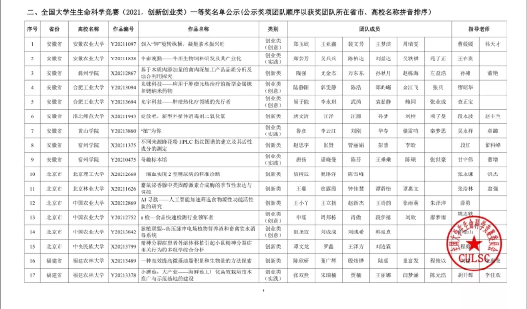 近日,2021年全国大学生生命科学竞赛决赛结果揭晓。我校陈海燕老师指导的《桦木醇的提取分离及抗氧化活性研究》项目组获得全国一等奖。