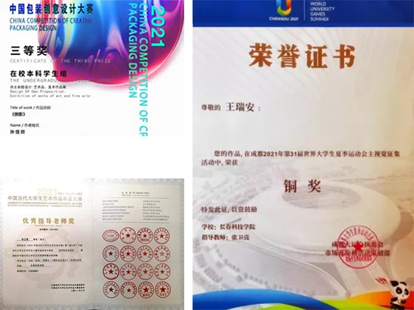 中国包装创意设计大赛指导学生孙佳欣在校本科学生组设计作品三等奖。