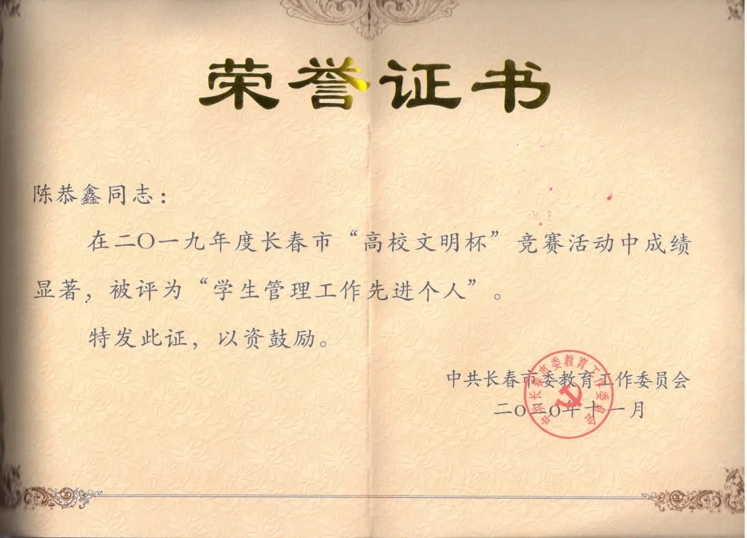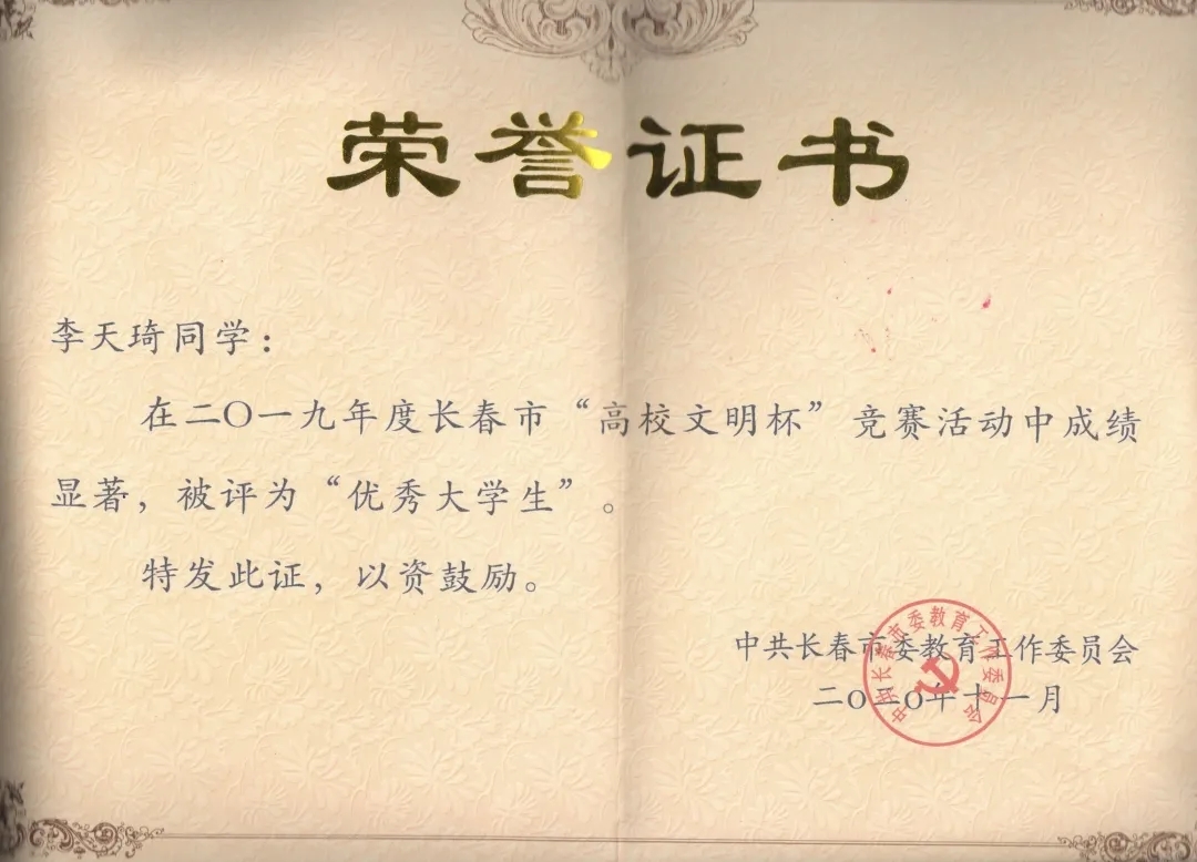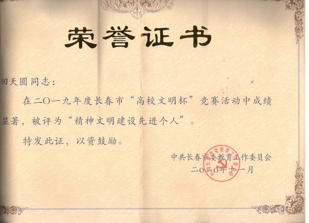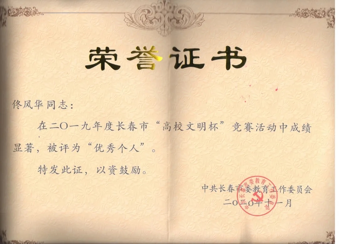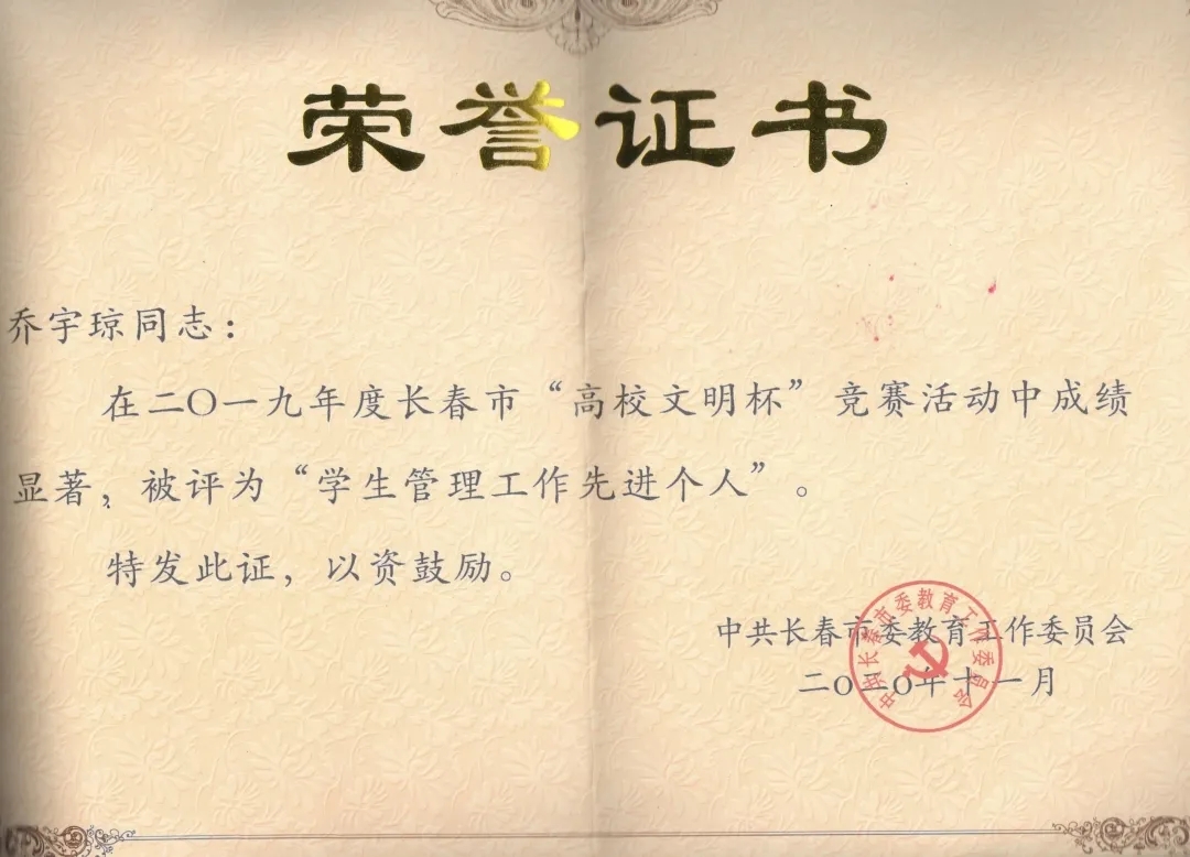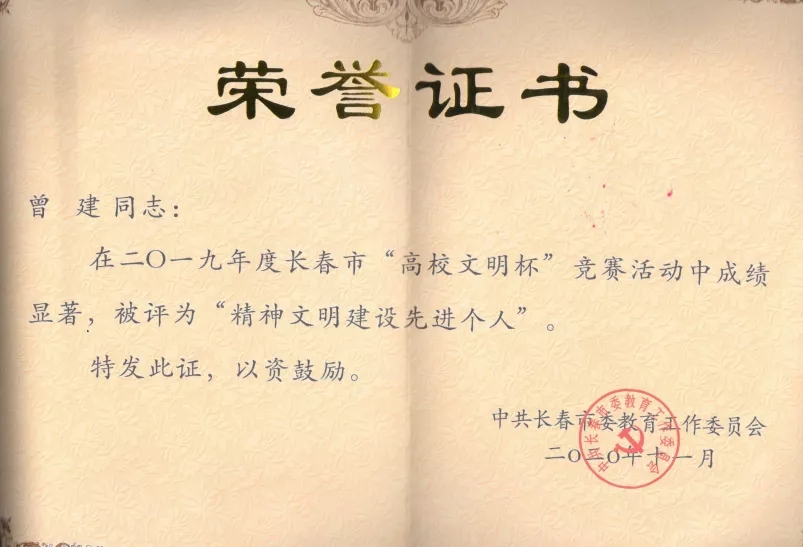 近日,长春市委教育工委下发了《关于表彰2019年度长春市“高校文明杯”竞赛活动先进集体和先进个人的决定》,我校在此竞赛活动中喜获12项集体荣誉,11项个人荣誉,喜获优秀组织单位和“平安校园”建设单位。