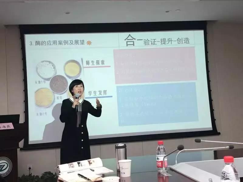 会上,陈海燕以《食品生化课堂“智慧”教学反思》为题作大会交流,她结合自己在吉林省参加智慧教学比赛的亲身经历,分享了收获心得和体会,同大家一起分享了她对智慧的理解,用生化人特有的语言同业内同行同频共振,传递能量。她开篇以设问互动形式探索专家眼中的智慧课堂,强调智慧反映的是教学的一种手段,以酶的特异性作用机理作为课堂知识核心进行串联,以遮—示—启—承—转—合为构建框架层层深入,用心设计互动思辨而又深化价值塑造的课堂,阐述真正的智慧内涵。
