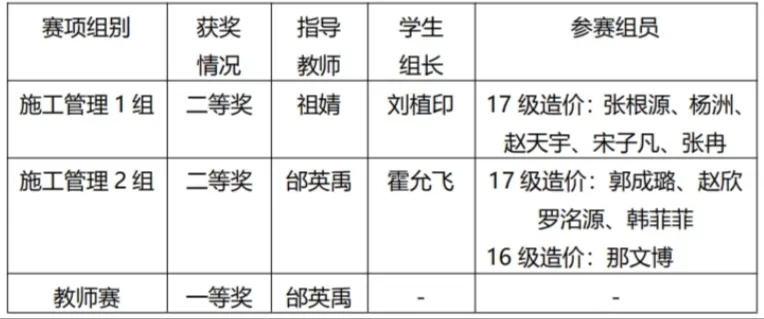 在七月中旬结束的第六届全国高校BIM毕业设计大赛中,建筑工程学院院工程造价专业师生再创佳绩,荣获二等奖两项、一等奖一项!