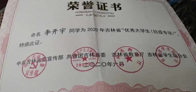 2020年年初,李开宇同学再一次积极响应号召,在疫情最严重时挺身而出,充当志愿者,为社区工作减轻负担,积极参与抗击疫情工作,主动请战、迎难而上、冲锋在前,投身到这场没有硝烟的战争当中,在工作中充分发扬了敢于斗争、勇于奉献的大无畏精神和“奉献、友爱、互助、进步”的志愿者精神。