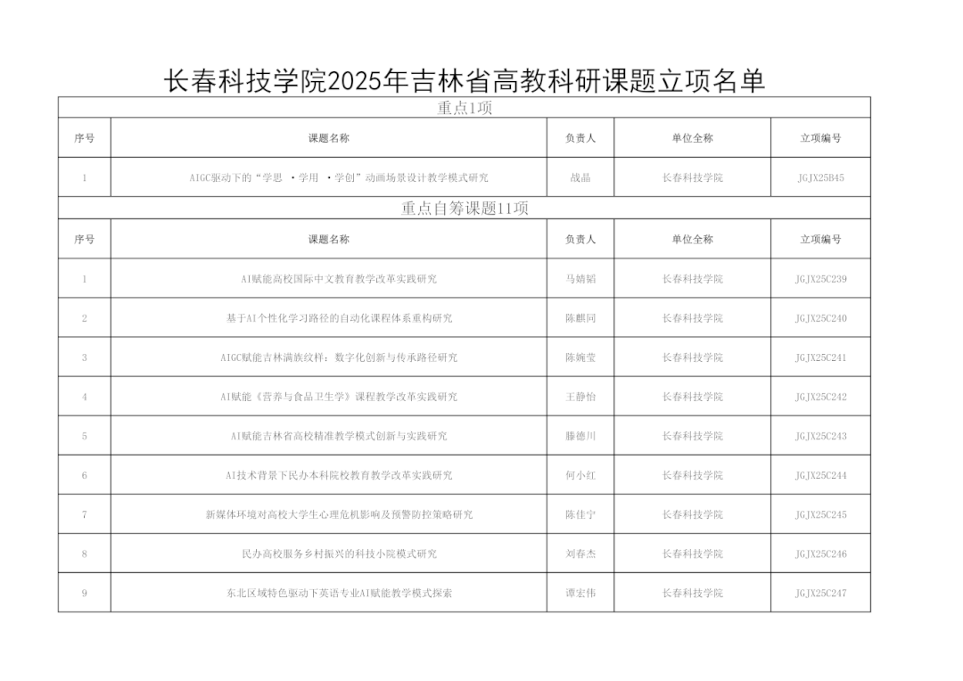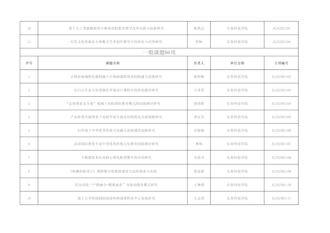 近日,吉林省高等教育学会公布了《关于公布2025年度吉林省高教科研课题立项通知》(吉高学会〔2025〕6号),我校共有98项课题成功获批立项,在全省高校中名列第五名,课题数量创历史新高。至此,我校已连续三年实现科研立项数量的稳步增长。