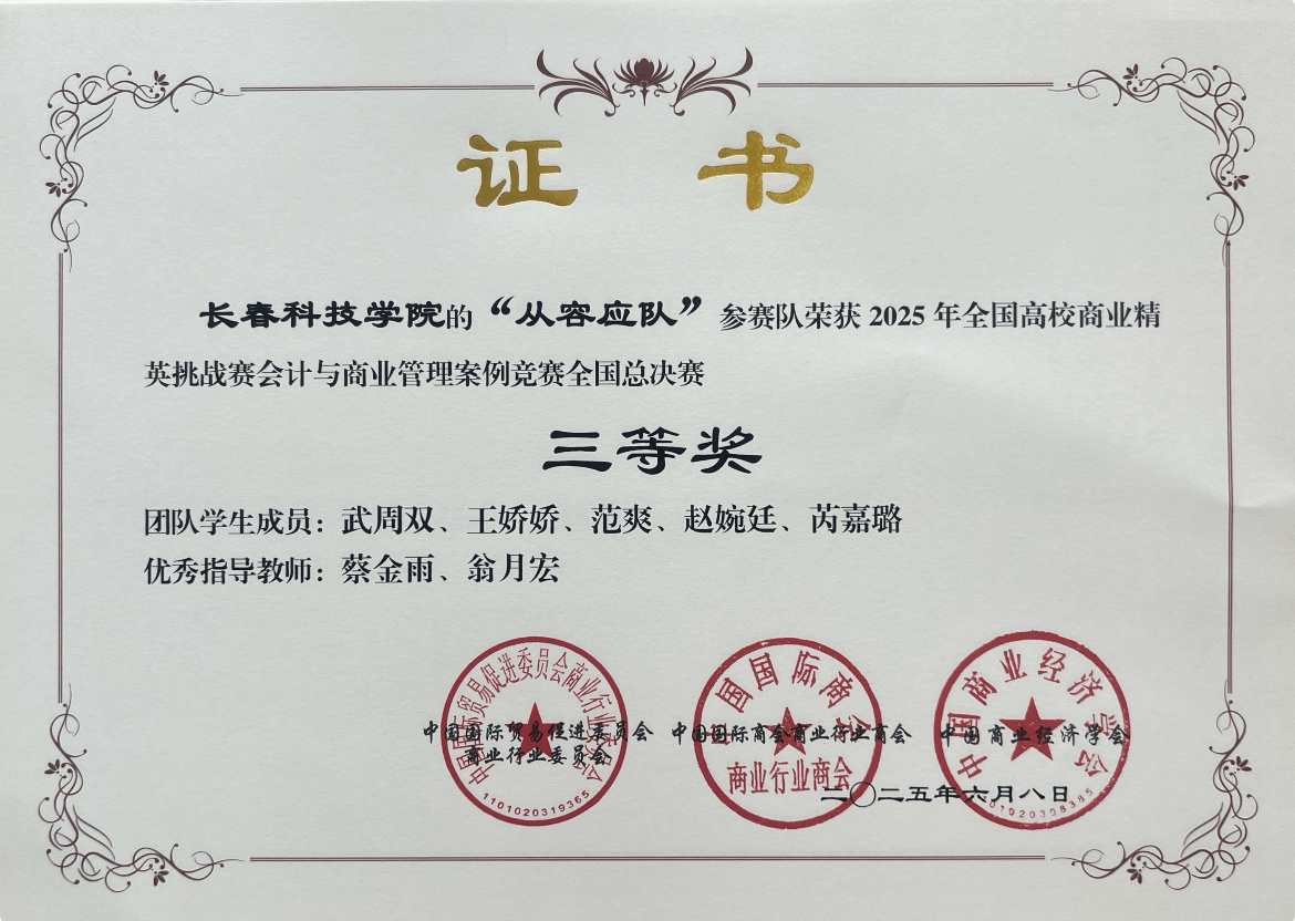 此次竞赛的优异成绩,有力彰显了我校财务管理专业在教学与实践领域的深厚底蕴与卓越实力,为后续学生参与同类赛事奠定了坚实基础,积累了丰富经验。通过“以赛促教、以赛促学、以赛促改”的创新模式,我校财务管理专业人才培养质量得到显著提升,学生的专业素养、实践操作能力以及创新思维能力得到全方位锻炼与增强。