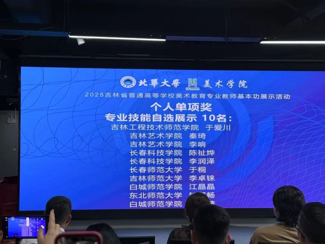 近日,2025年吉林省普通高等学校美术教育专业本科生基本功展示活动圆满收官,经过紧张激烈的评选,长春科技学院视觉艺术学院学子表现突出,斩获佳绩,充分彰显了学院在美术教育领域的强劲实力与育人成果。
