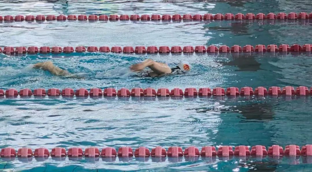 哨声响起,泳池瞬间沸腾!我校选手如离弦之箭跃入水中,双臂飞速划动破开晶莹水幕,双腿有力蹬水溅起璀璨浪花。他们火力全开,以标准的收腿、翻脚、蹬夹水动作在碧波间穿梭,每一次抬头换气都迸发强劲动力,不断调整节奏向终点冲刺。飞溅的水花折射出青春光芒,选手们劈波斩浪的身影,将速度与耐力演绎成水中的“速度与激情”,稳健的泳姿与奋勇争先的姿态,让赛道成为展现扎实功底的舞台。