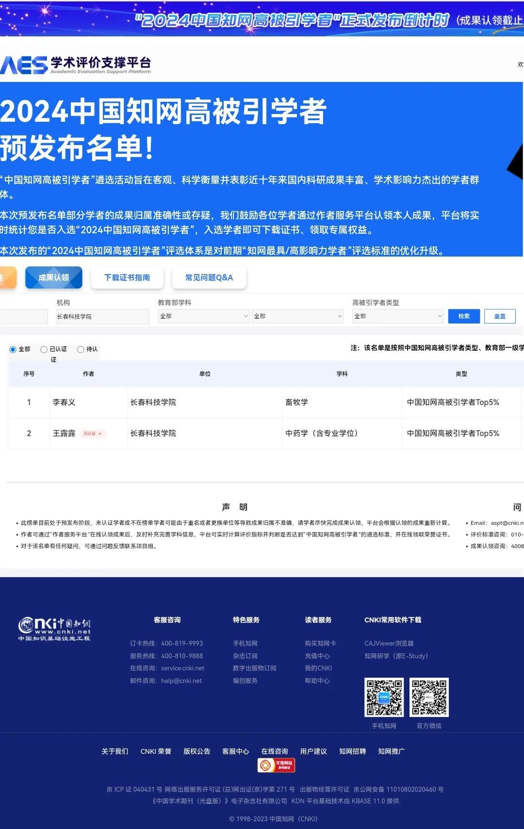 近日,中国知网发布了“2024中国知网高被引学者”名单。我校李春义、王露露2位学者入选“2024中国知网高被引学者TOP5%”,在全国众多高校学者中脱颖而出,彰显了我校在科研创新和学术影响力方面的突出表现!