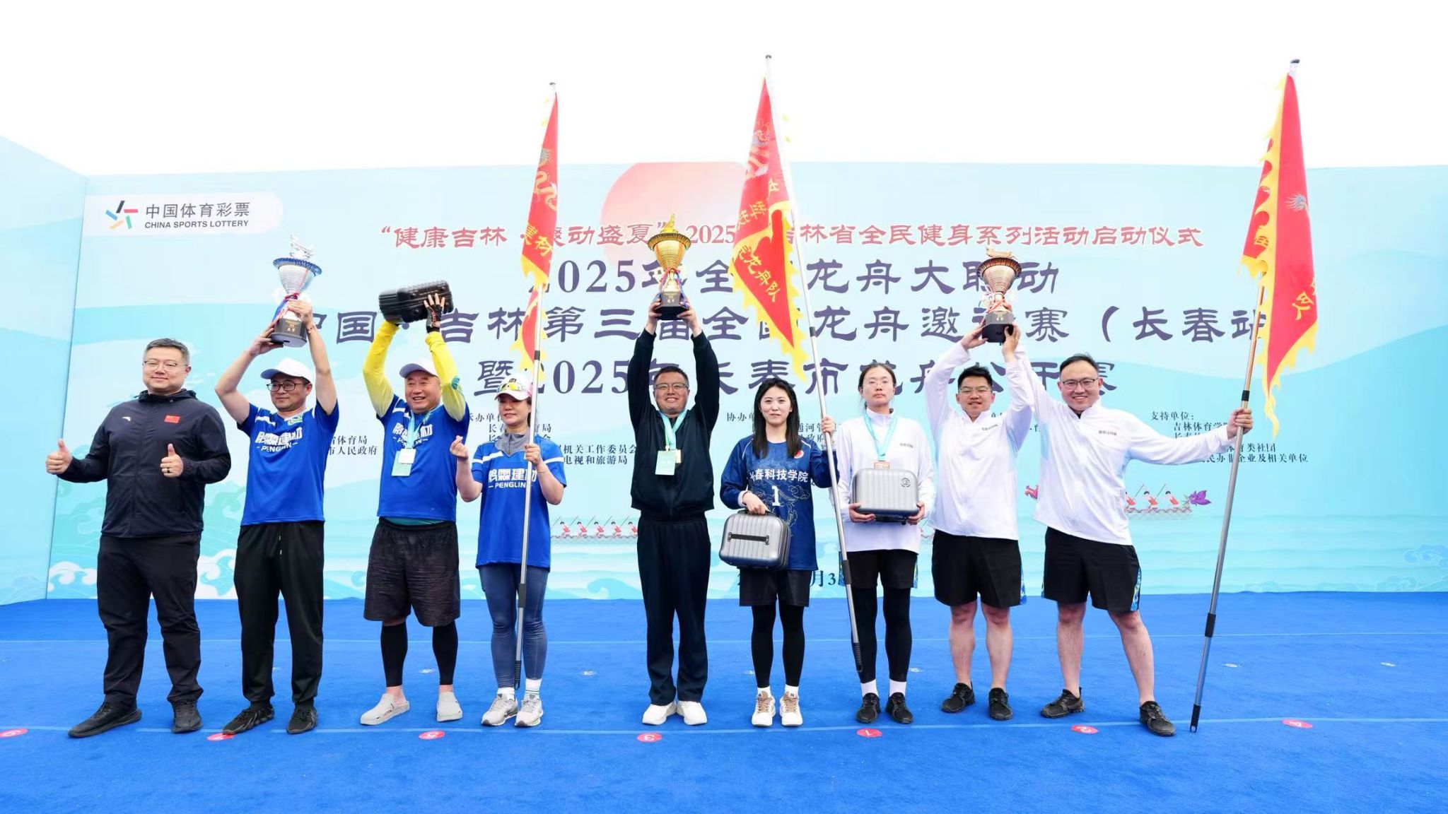 粽香萦绕端阳日,龙舟飞渡竞技时。5月31日上午,“金蛇献瑞 龙舞九州”2025年全国龙舟大联动中国·吉林第三届全国龙舟邀请赛(长春站)暨2025年长春市龙舟公开赛在长春市伊通河工业轨迹公园河道隆重举行。长春科技学院龙舟队凭借卓越的团队协作和顽强的拼搏精神,在众多参赛队伍中脱颖而出,一举夺得职工组冠军,并荣获最佳团队拼搏奖和最佳团队组织奖,再次为学校赢得了荣誉。