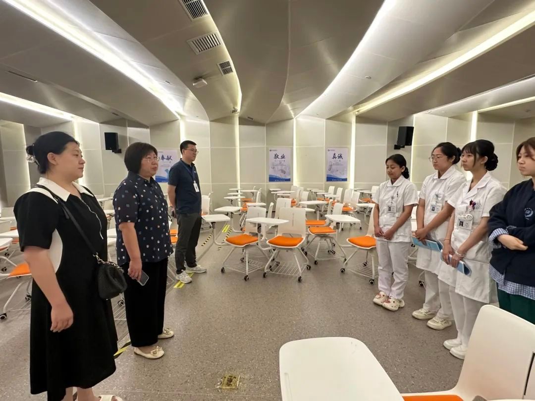 副院长刘春侠一行深入实习科室,看望正在实习的学生们。与学生亲切交谈,询问他们在实习过程中遇到的问题和困难,特别叮嘱学生要增强安全意识,严格遵守医院操作规程和安全管理规定,注意自身防护和出行安全。鼓励学生珍惜实习机会,将所学理论知识与实践紧密结合,不断提升专业技能和职业素养,以高度的责任感和使命感对待每一位患者。学生们纷纷表示,在实习医院得到了带教老师的悉心指导,不仅在专业技能上有了很大进步,还深刻体会到作为一名护理工作者的责任与担当,会时刻注意安全,在接下来的实习中更加努力,不辜负学校和医院的期望。