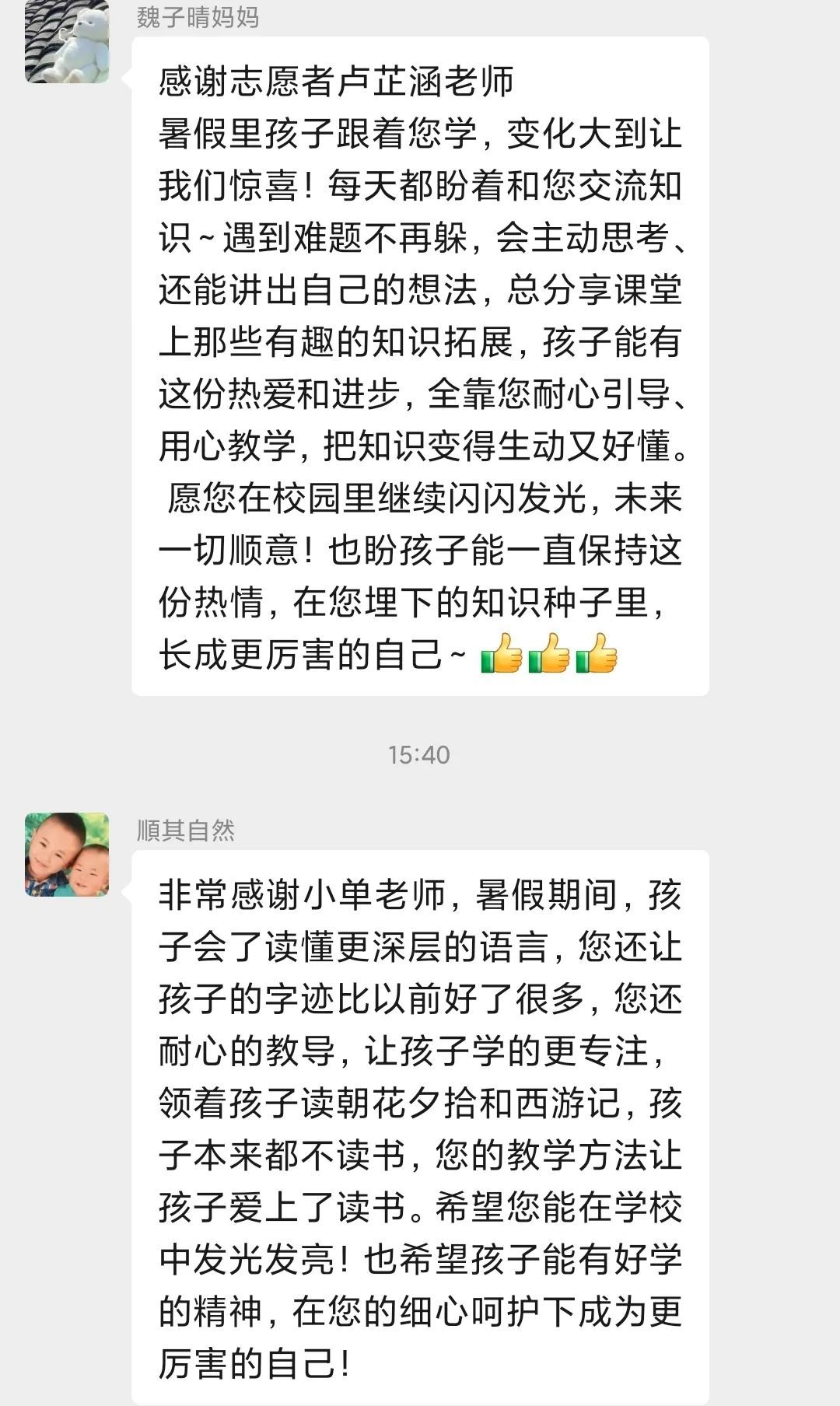此次活动赢得家长一致好评,不少家长在群内留言认可活动意义与志愿者负责态度,朴实话语为公益活动画上圆满句号。