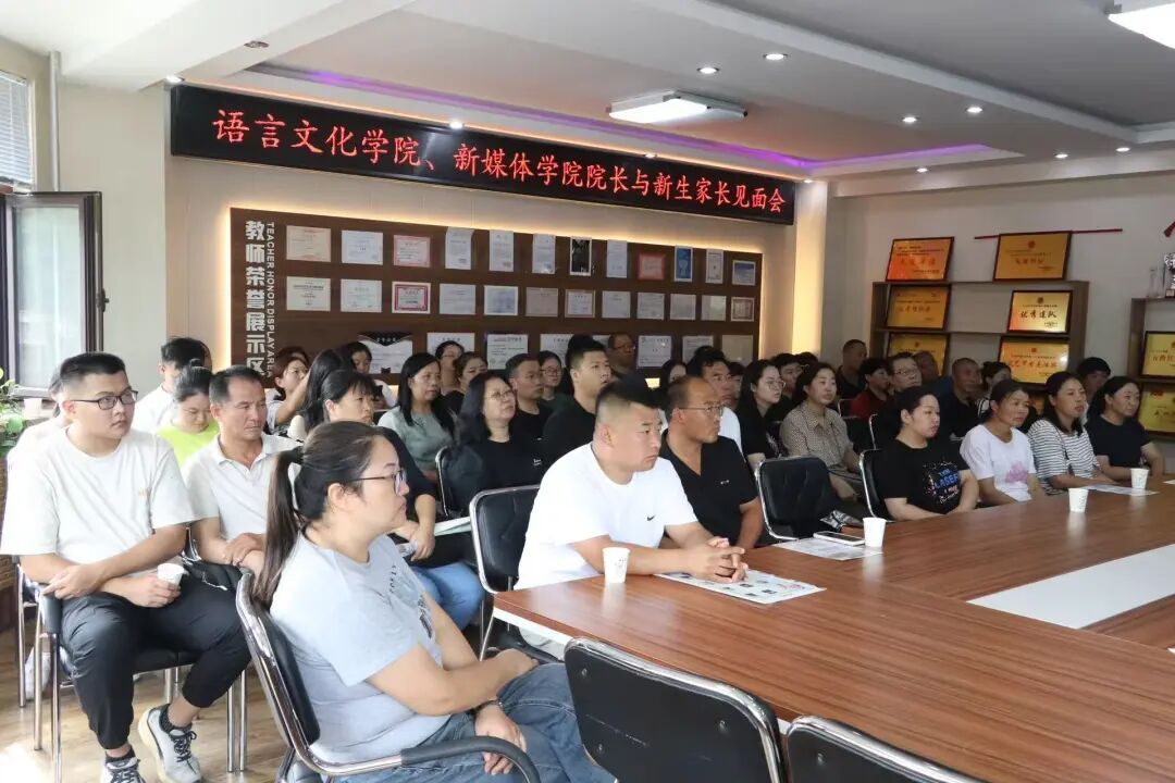 为搭建家校沟通桥梁,助力新生家长全面了解学校育人理念,8月30日、31日,语言文化学院、新媒体学院在1217会议室召开2025级新生家长见面会。会议由韩墨老师主持,学院院长唐敬仙、部分2025级新生家长共同参与。