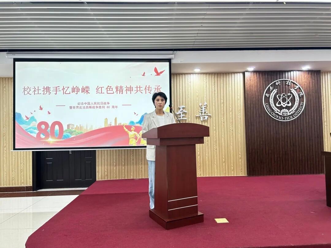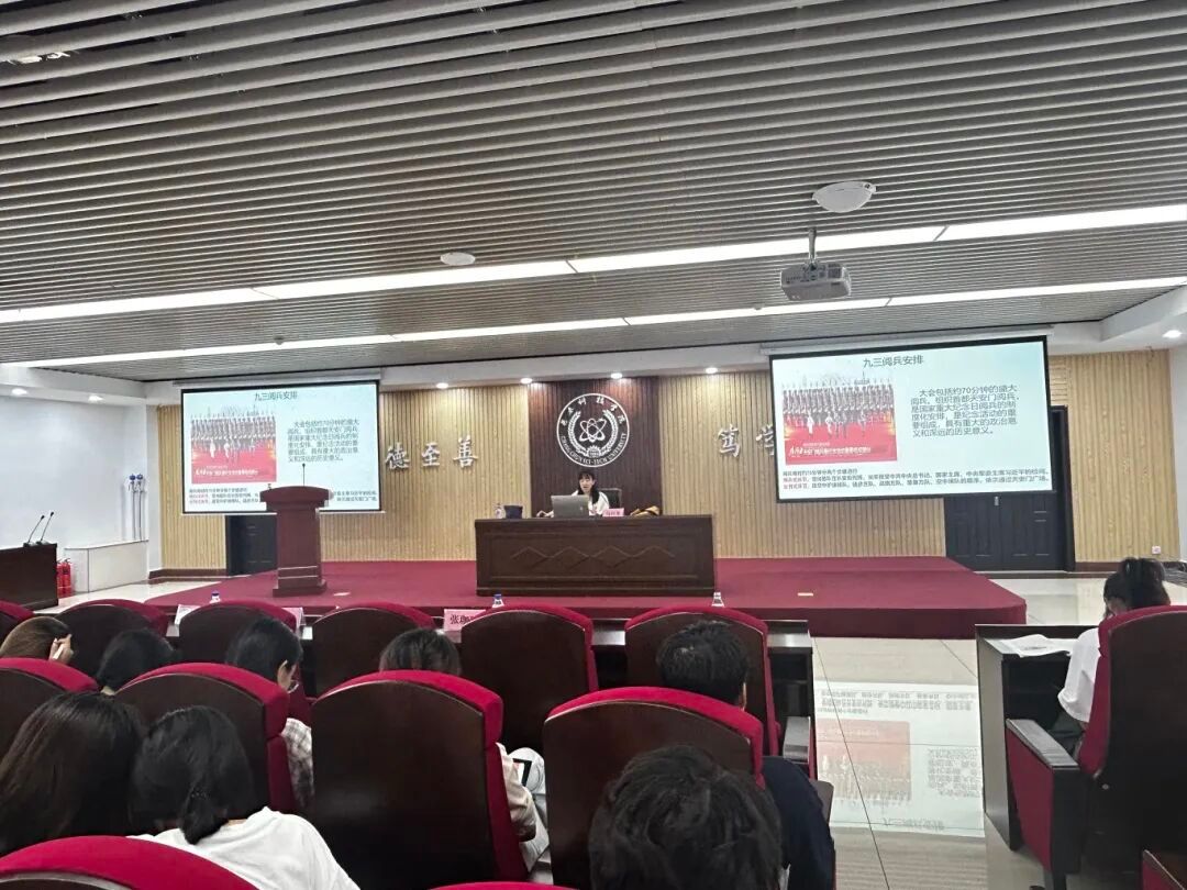 张狂静老师从理论层面,深刻阐释了伟大抗战精神的科学内涵。她指出,这一精神以“天下兴亡、匹夫有责”的爱国情怀为核心,以视死如归、宁死不屈的民族气节为底色,以不畏强暴、血战到底的英雄气概为特质,并以百折不挠、坚忍不拔的必胜信念为支撑。愿你们将抗战精神中的爱国情怀、责任担当融入日常,以坚韧不拔的意志面对学业与生活中的挑战,以敢为人先的勇气追逐梦想。真正成为胸怀家国、脚踏实地、不负时代的新时代青年。
