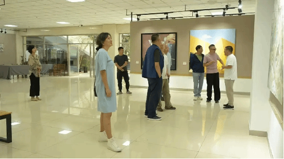 李文成院长陪同专家们参观了视觉艺术学院美术馆、吉林省视觉艺术创新研究中心、陶艺工作室、材料工作室、摄影工作室、优士工作室等教学环境、学术平台和条件设施。在美术馆参观中一幅幅充满创意的学生作品,承载着学子们的艺术思考与实践探索,专家们驻足细赏,不时与陪同人员交流创作细节,对学院人才培养的扎实成效给予肯定;特色廊文化空间里,每一处设计都融入育人理念,文字与艺术装置相映成趣,让专家们深切感受到润物无声的文化育人氛围,直言这是将校园空间转化为育人载体的生动实践;工作室中,从设备配置到课程落地,专家们详细询问实践教学开展情况,对学院组群式项目教学以及实践与文化双轨并行的教学模式给予高度关注。