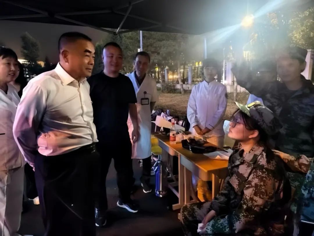 9月2日晚间,在新生军训第一天的晚训时分,董事长张电达不辞一天工作劳累,亲临新生军训场地,看望慰问学校2024级全体参训新生。