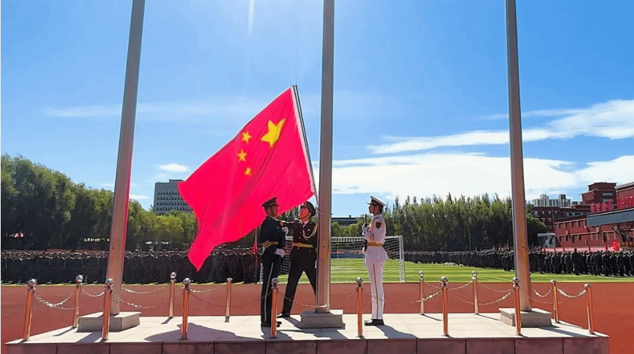 全体师生肃立,向国旗行注目礼