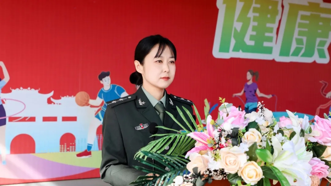 军训副总指挥,职业技术学院党总支副书记王东红宣布军训相关内容