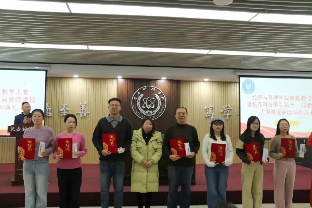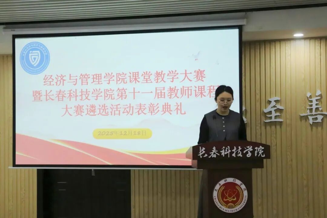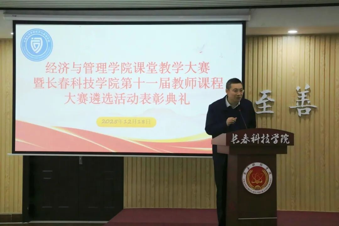 为进一步激发全院教师教学热情,坚持立德树人根本任务,全面提升课堂教学质量与育人水平,12月18日,经济与管理学院举行课堂教学大赛暨长春科技学院第十一届教师课程大赛遴选活动颁奖典礼。学院院长赵立夫,党总支副书记武强,副院长李尚越,院长助理陈海英,各专业主任、教师及学工办教师代表共同出席,见证优秀教师的荣耀时刻。