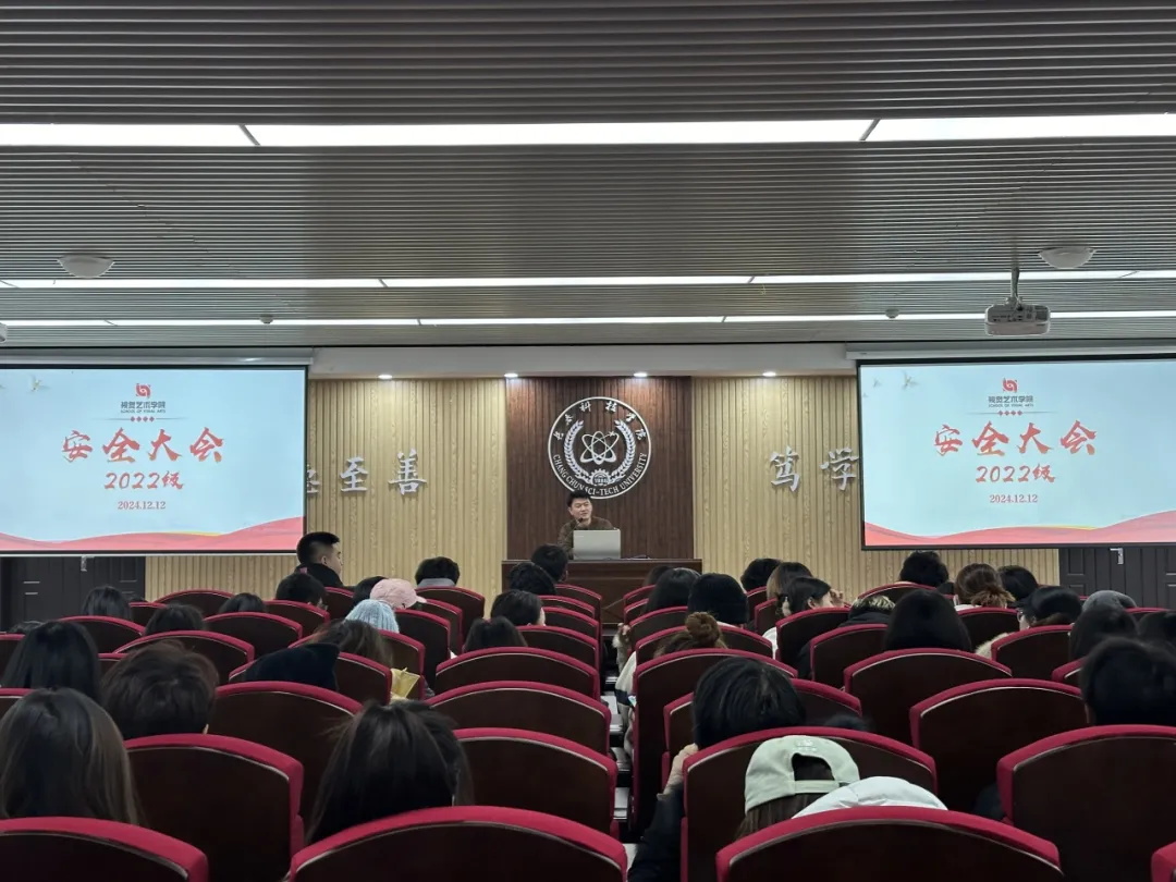 为切实增强学生的安全防范意识,提升自我保护能力,营造安全稳定的校园环境,学院在行政楼411召开了2022级安全大会。本次大会由2022级辅导员曹岩老师主持,全体2022级同学参加会议。