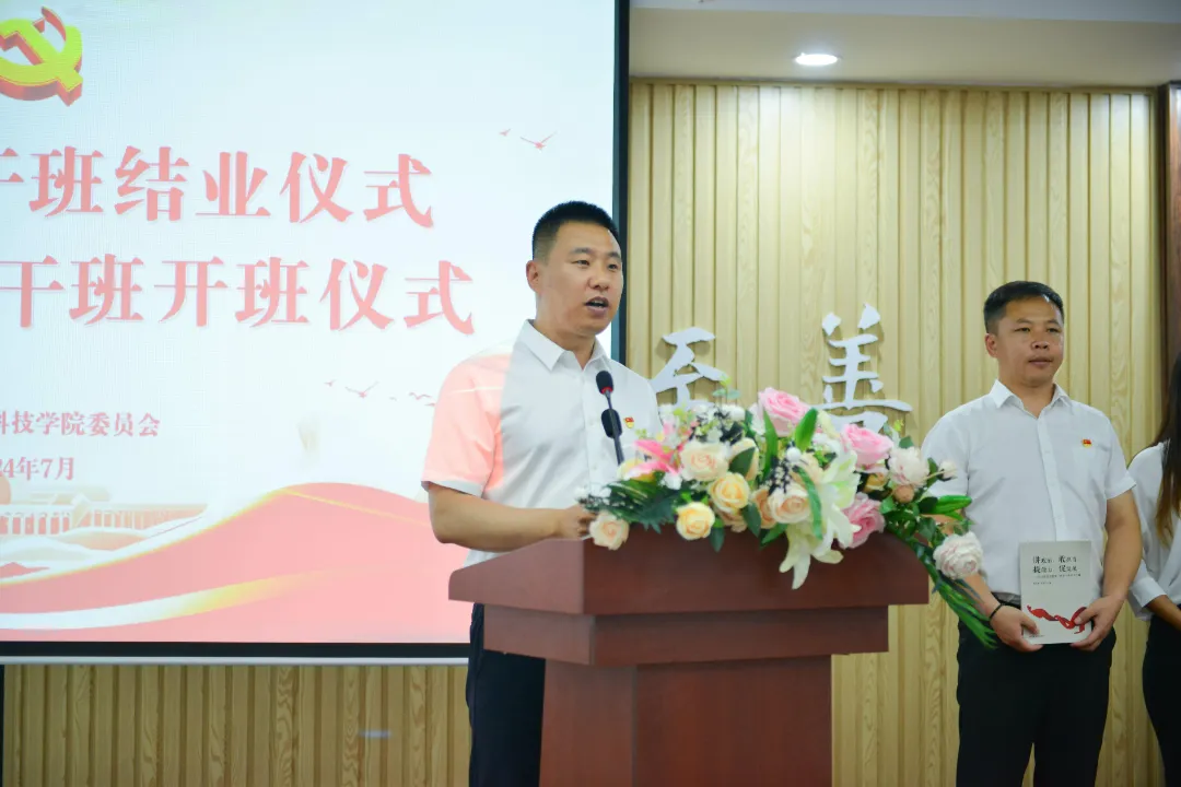 2024年7月3日下午,长春科技学院党委在行政楼411会议室举行第一期青干班结业仪式暨第二期青干班开班仪式。校长栾立明、党委书记林佳彬、副校长张代治、党委副书记宋学山、副校长高杰、校长助理刘立东、副校长刘洋、党政办公室主任孙大伟、各党总支书记、直属支部书记、机关科级以上干部、第一期培训学员、第二期培训学员参加了会议。党委书记林佳彬主持会议。