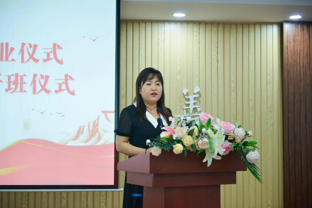 第一期学员代表张狂静发言,她表示会将培训学到的知识全面转化应用到今后的工作实践中去,切实践行正确的事业观,立足岗位实际,爱岗敬业奉献,持续为学校高质量发展贡献力量。