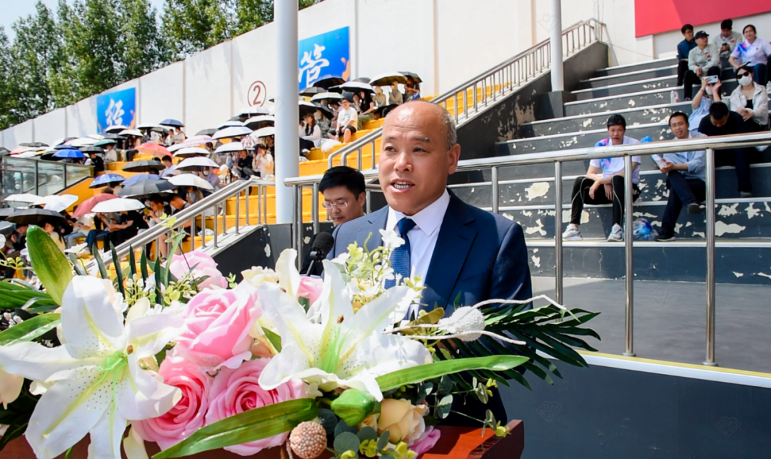 他希望,全体师生以这次运动会暨体育文化节为新的起点,进一步发扬团结拼搏,奋力争先的精神,培养更多德、智、体、美、劳全面发展的应用型人才,迎着朝阳创一流、昂首阔步迈向更加辉煌的明天,为推动我校教育事业健康、快速、高效发展,为把我校建设成教育强校而不懈奋斗!