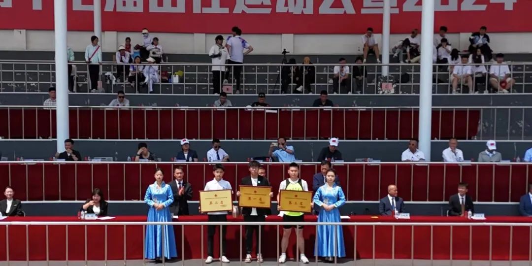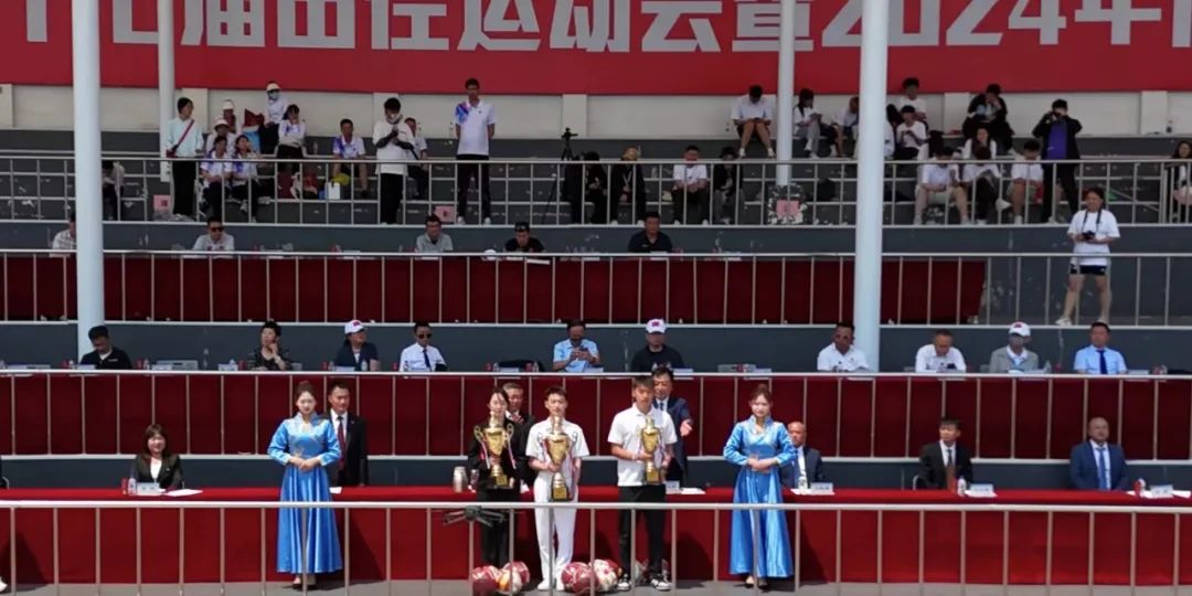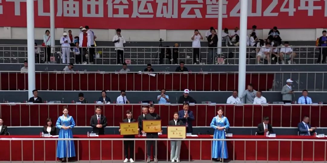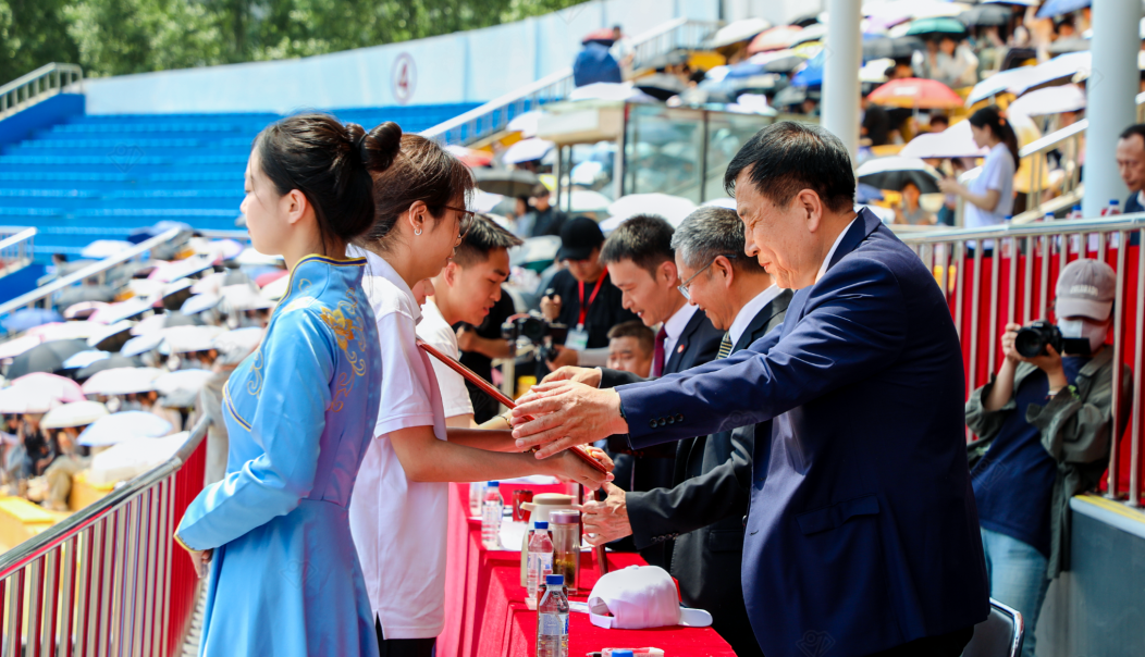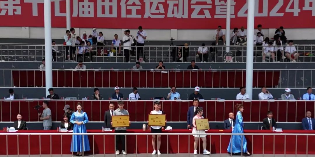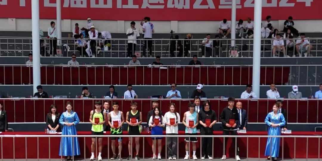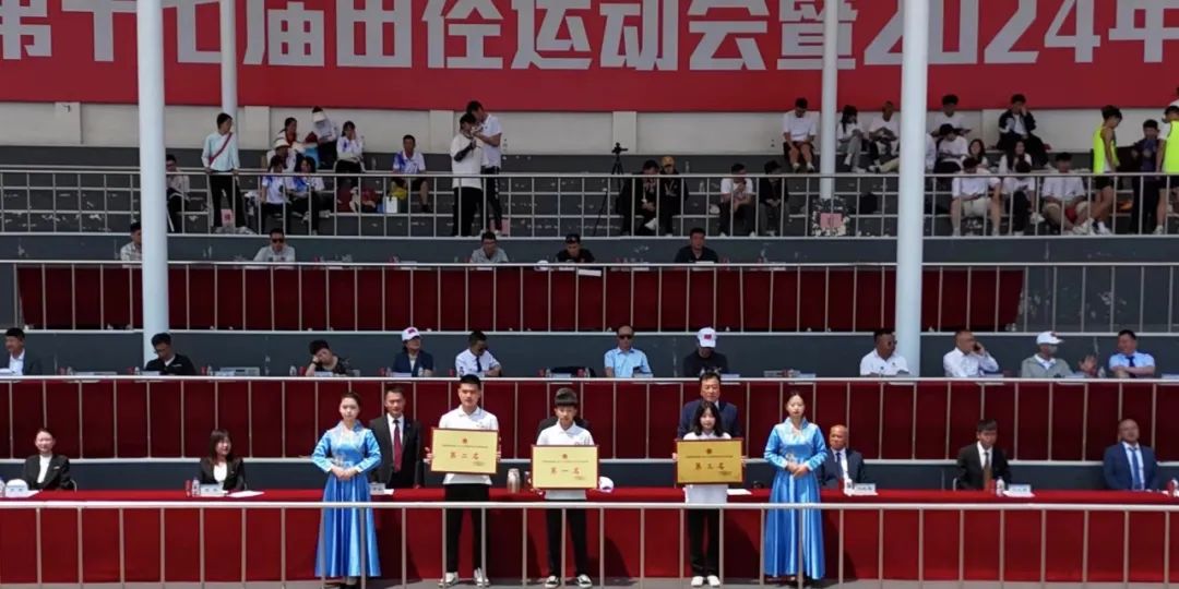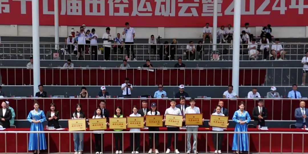 闭幕式上,裁判长邵波宣布比赛成绩。党委副书记高芳、校长助理刘立东先后宣布“田径比赛教工组优秀运动员”和“田径比赛学生组优秀运动员”名单;副校长高杰、刘晓辉分别宣布“长春学院2024年体育文化节比赛成绩及获奖单位”和“文艺节目表演奖”评比结果;党委副书记宋学山宣布大会“精神文明奖”“优秀组织奖”评比结果。名单宣读完毕后,与会领导为获奖个人和单位颁发了荣誉证书、奖牌。