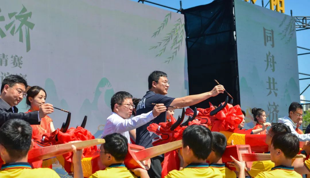 上午9:00整,启动仪式开幕,舞蹈《众人划桨开大船》、歌伴舞《忆江南∙双阳石溪》、健身操《奋进新时代》等文艺节目先后上演,增添了浓厚的喜庆氛围。仪式上,吉浙两省互赠冠军装备,结同舟之谊,扬友谊之帆。龙舟“点睛”环节后,省政府领导宣布开赛。