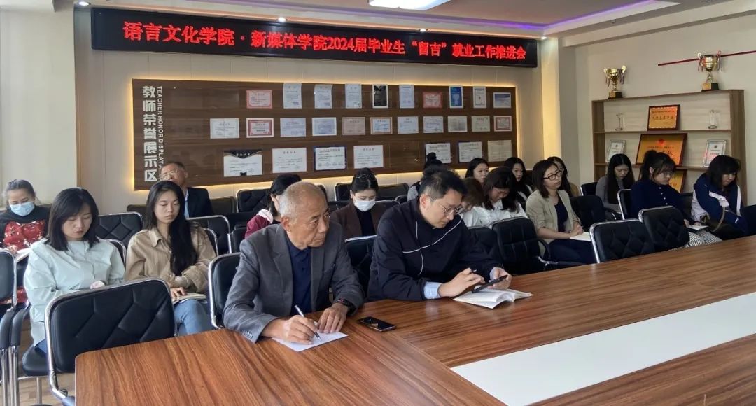 为进一步做好2024届毕业生就业创业工作,2024年5月30日13:00,语言文化学院·新媒体学院于第一教学217会议室召开2024届毕业生“留吉”就业工作推进会,语言文化学院·新媒体学院陈院长、副院长林罡、党总支副书记张贺亮、教学秘书付佳英、各专业主任以及全体辅导员参加。