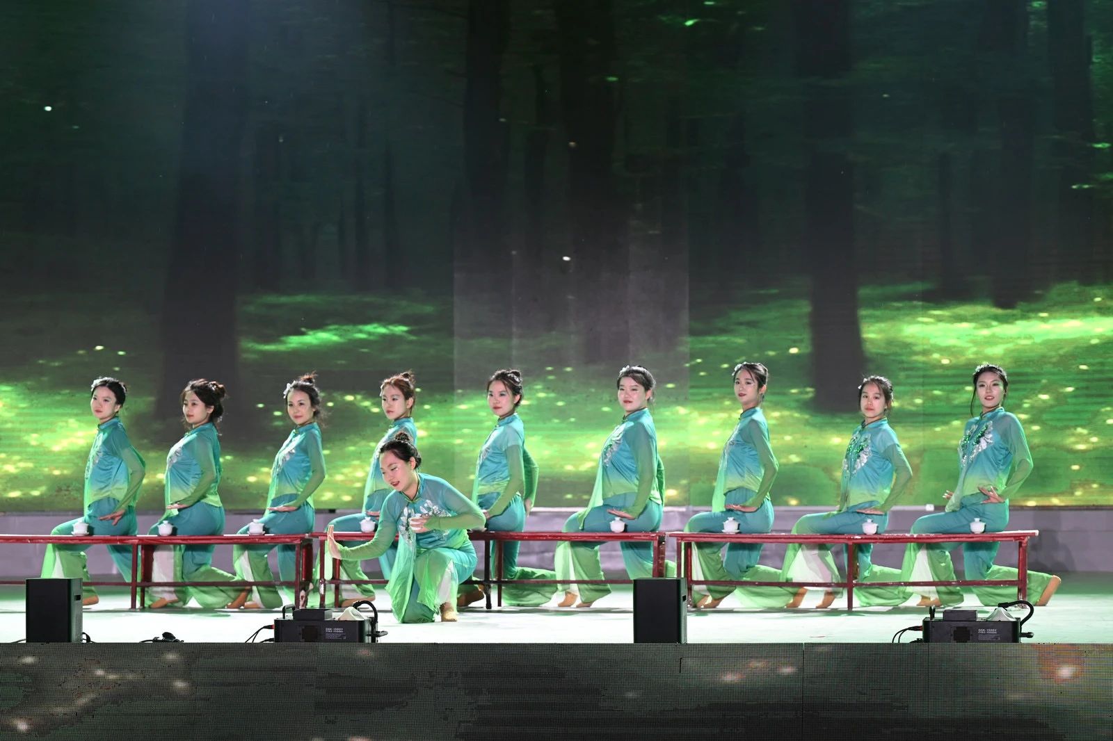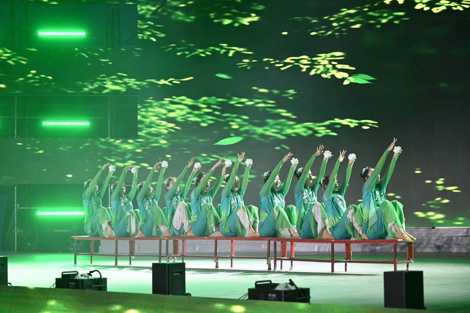 整场开幕式以四季划分篇章。我校民族舞蹈《春意》在此次“春”篇章中作为开场节目进行展示。整首作品用不同的音乐方式表达各具特色的情景,采茶、品茶等一系列舞蹈动作在长科学子的精彩演绎,音乐及灯光的衬托下,仿佛将观众带入春暖花开,满山茶香的画面里,让人流连忘返。