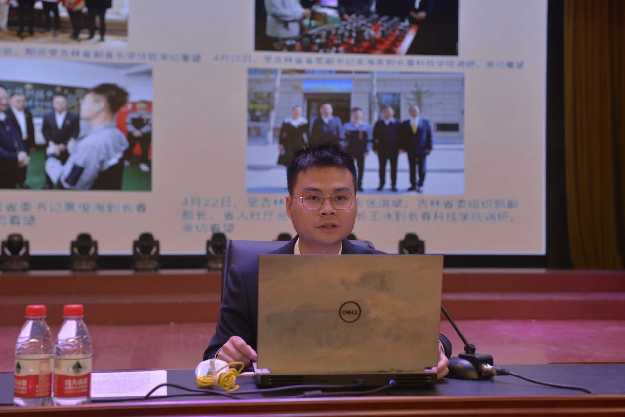 大会第一项,由李文成院长向参会的全体师生介绍周楚杰同志取得的成就,并发起全院师生向周楚杰同志学习的倡议。