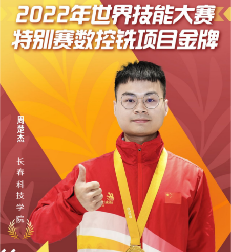 周楚杰,2018年9月就读于广东省机械技师学院数控加工专业,在校期间先后获得广东省技术能手、广东省青年五四奖章、全国技术能手、全国青年岗位能手,铣工高级技师等荣誉称号。2022年10月,赴德国参加2022世界技能大赛特别赛,荣获数控铣项目获得冠军,实现我国在该赛项的“四连冠”,现担任长春科技学院机械技能开发中心开发研究室主任。