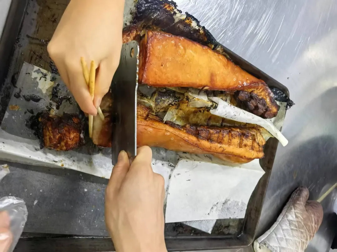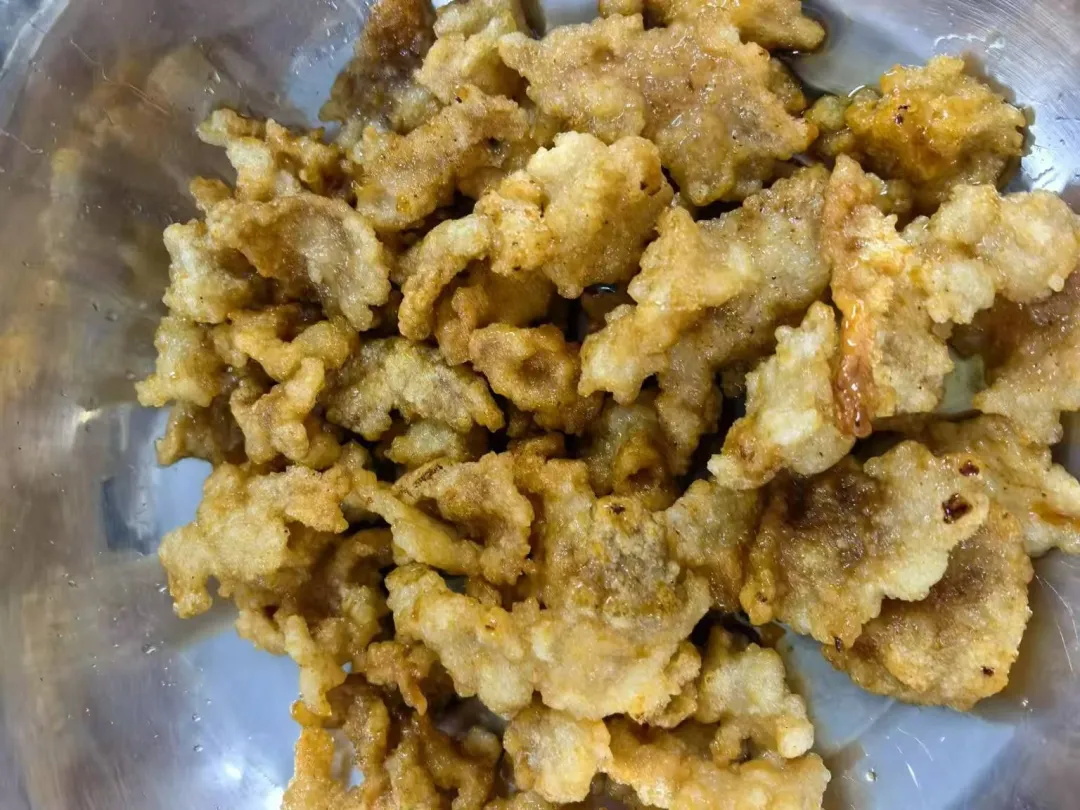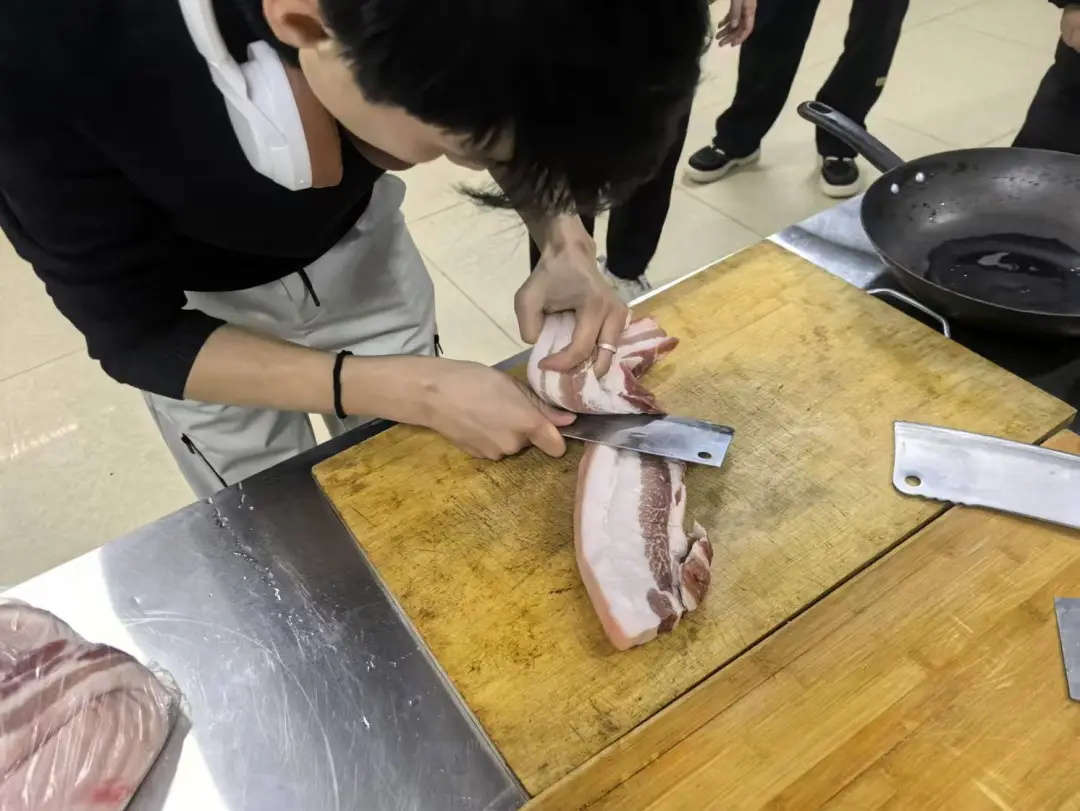 最后是脆皮五花肉的制作,虽然制作艰难 ,但大家并未因此退缩,跟着会长所教的步骤,成功的完成了脆皮五花肉的制作。金黄诱人、外酥里嫩的脆皮五花肉也成为了会员们最爱的一道菜。为了不浪费食材,会员们又利用剩余的肉制作了一道小炒。