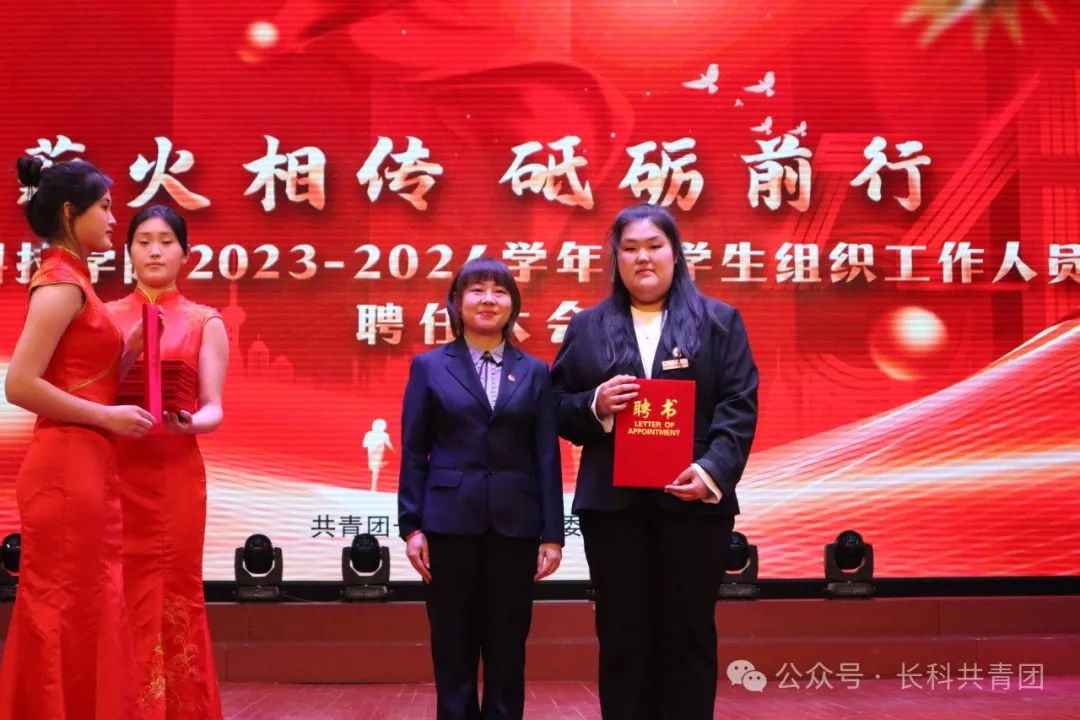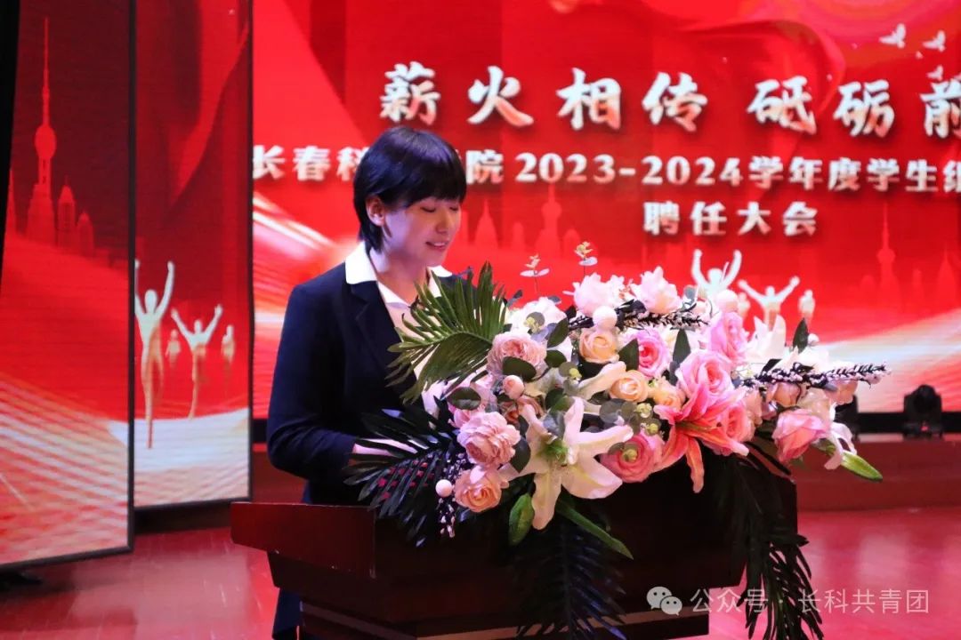 工作人员宣读《关于对长春科技学院第二十二届学生会、自律委员会、社团发展中心、分团委工作人员的聘任决定》。